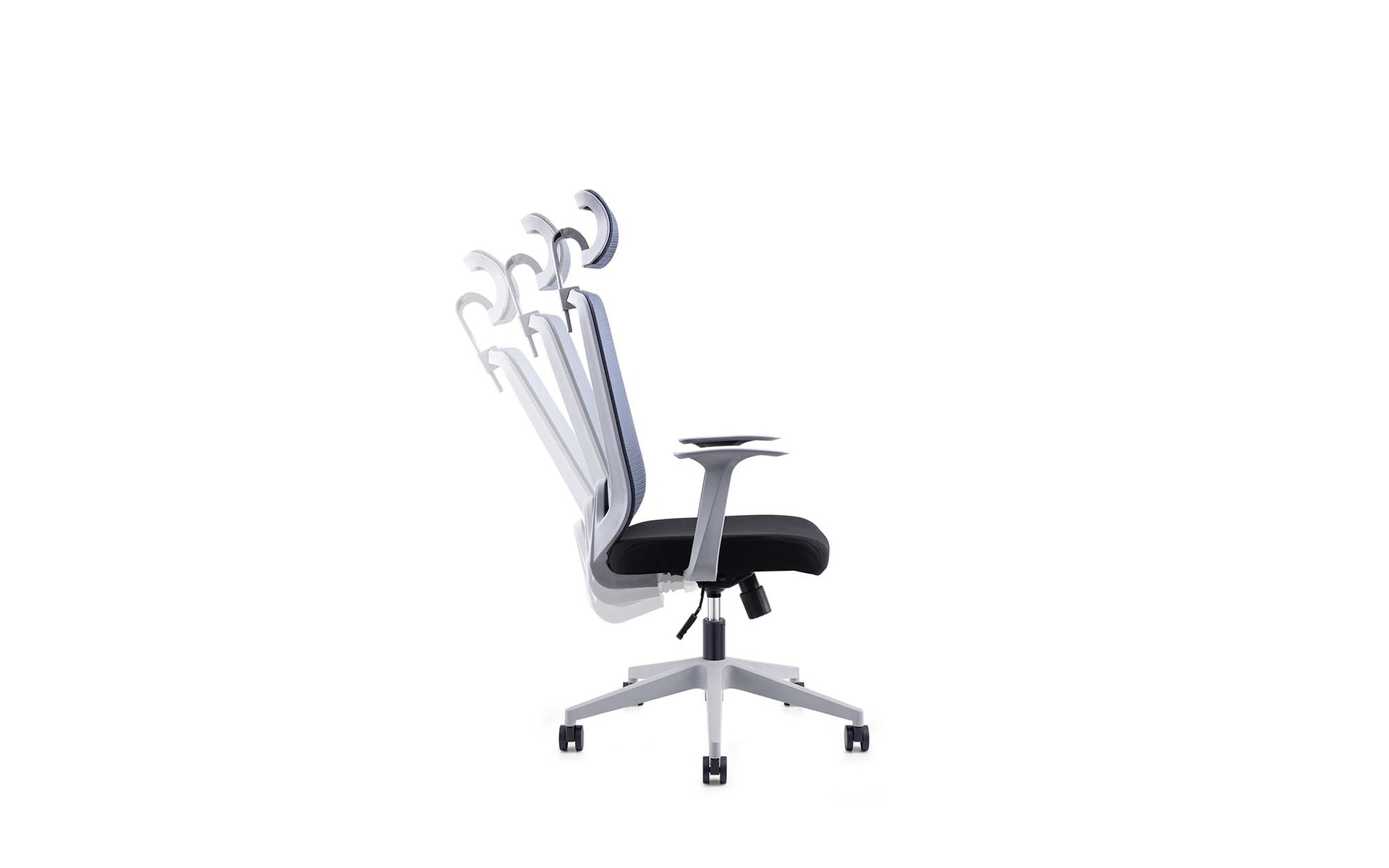 3D立体网布靠背,3M防水布饰面,高密度成型海绵,尼龙加纤背框,PP固定扶手,2段倾仰锁定底盘,韩国SHS黑色拉伸气杆,350#电镀脚,5分PU静音轮