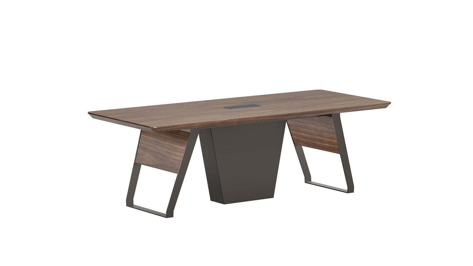 极致办公系列,秉承华旦的时尚优雅的品牌基因,以直线中穿插多维弧度的造型语意,将天然的半开放胡桃木纹与金属的质感有机组合,尽显原木风情与利落高效。