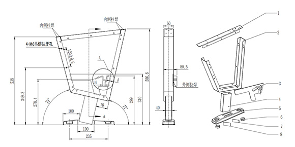 站脚尺寸及技术要求: