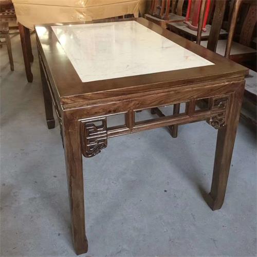 餐厅家具厂家为您展示酒楼饭店湘菜川菜馆实木边框镶嵌大理石中式餐桌图片展示\价格说明\定做服务。