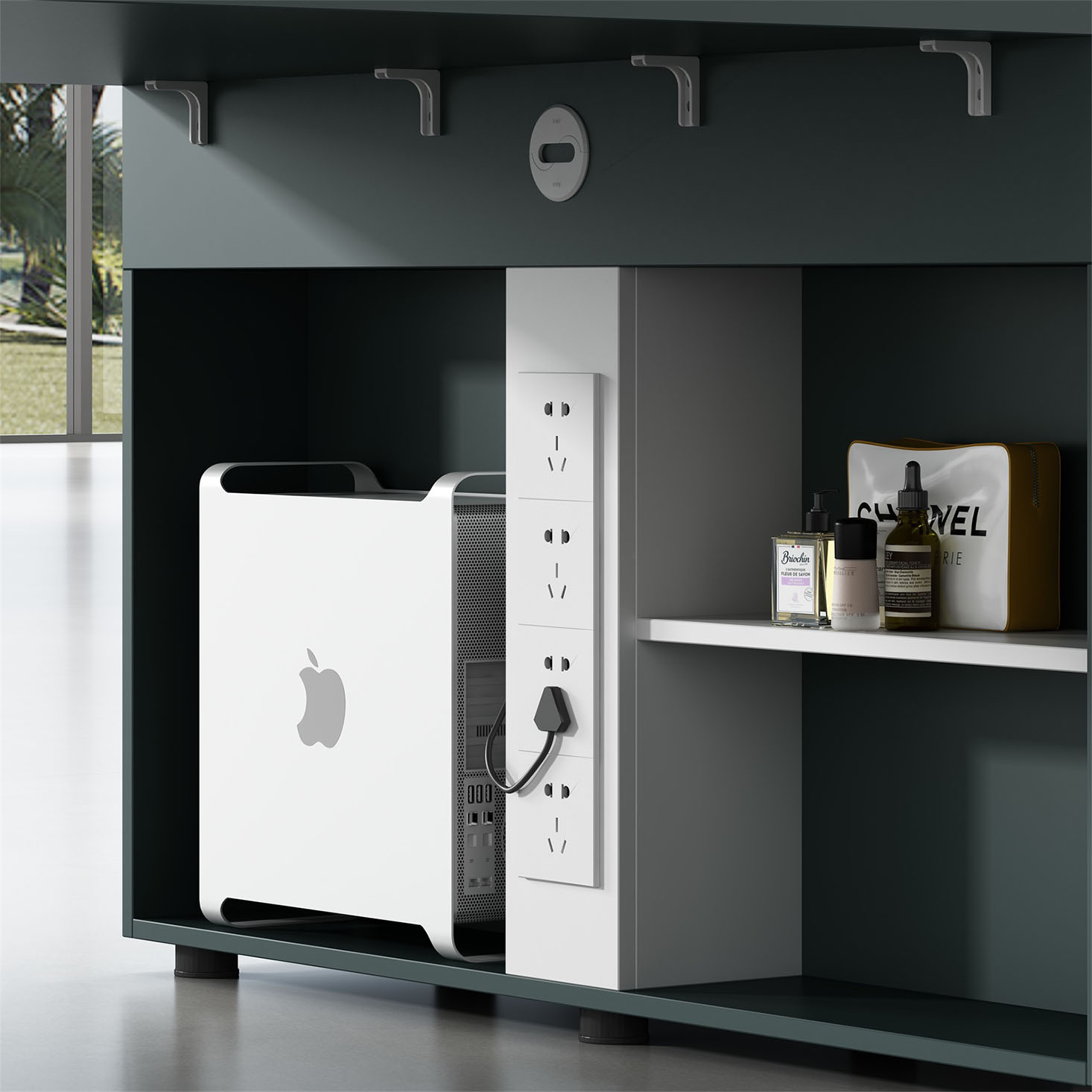 - A:澳洲尤加利+进口暖白 B:进口暖白+暗夜绿 不含桌屏(抽屉带密码锁)